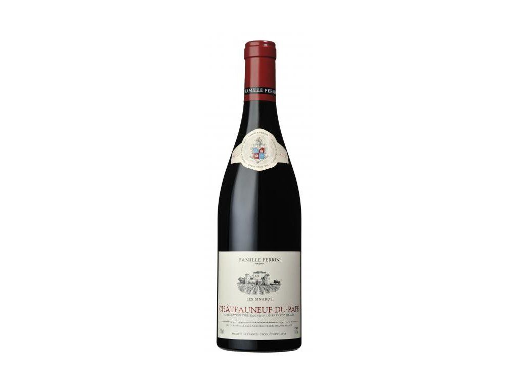 Chateauneuf du Pape Les Sinards vyrábí rodina Perrin z velké části z mladých vinic ve vinařství Château Beaucastel v jižním údolí Rhôny. Kombinace vůní sladkého koření, třešní, skořice a červeného a černého ovoce. Intenzivní rubínová bava, elegantní douhý závěr v chuti.
